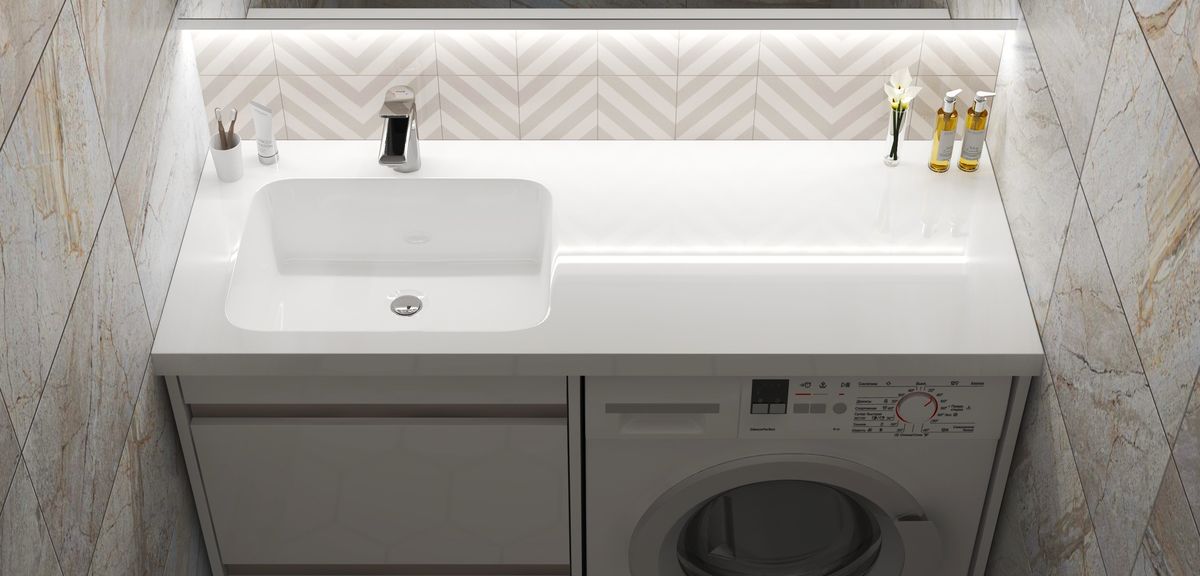 Умывальник над стиральной машиной "Лакшери"1196*170*473ш/в/гл с кронштейнами(левый)