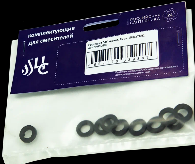 Прокладка 3/8" черная, 10 шт. ИНД.УПАК.