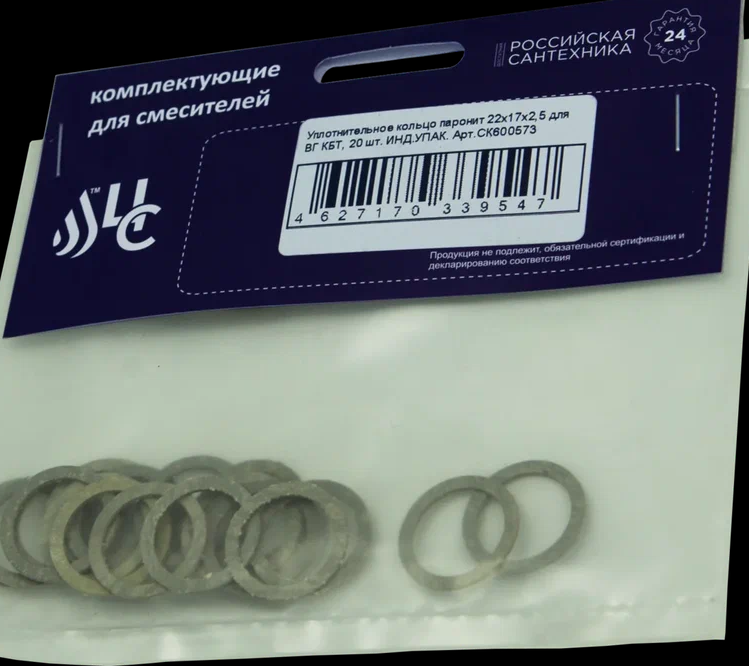 Уплотнительное кольцо паронит 22х17х2,5 для ВГ КБТ, 20 шт. ИНД.УПАК.