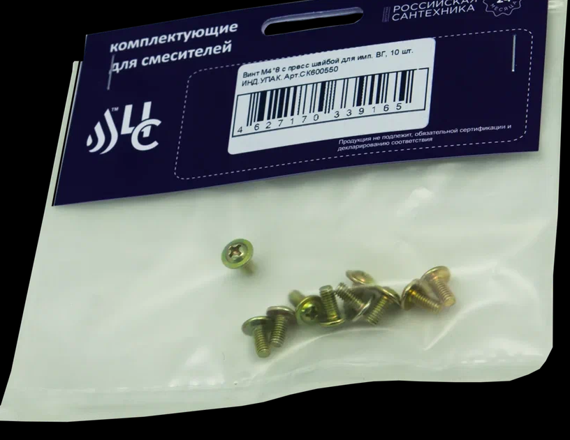 Винт М4*8 с пресс шайбой для имп. ВГ 10 шт. ИНД.УПАК