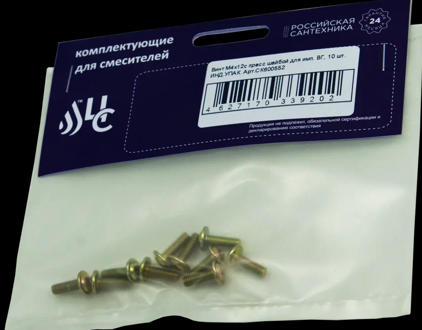 Винт М4*12 с пресс шайбой для имп. ВГ 10 шт. ИНД.УПАК