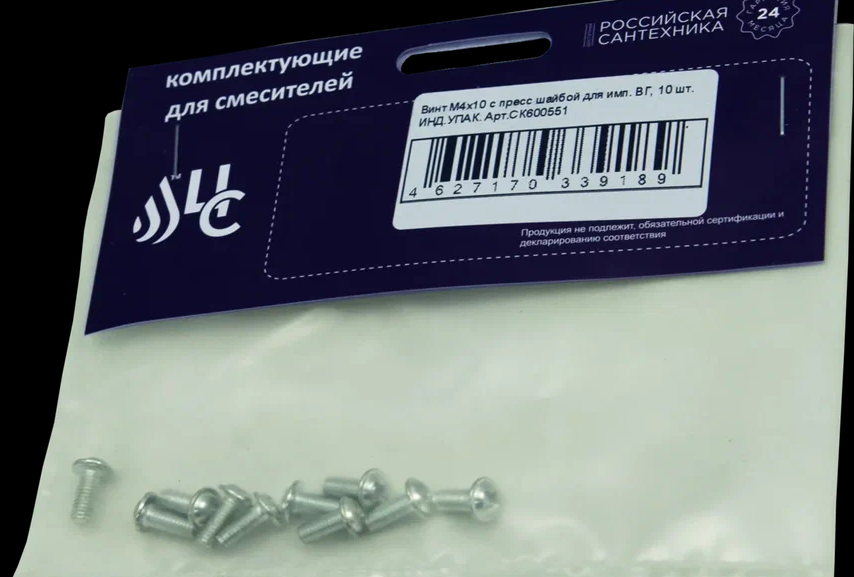 Винт М4*10 с пресс шайбой для имп. ВГ 10 шт. ИНД.УПАК