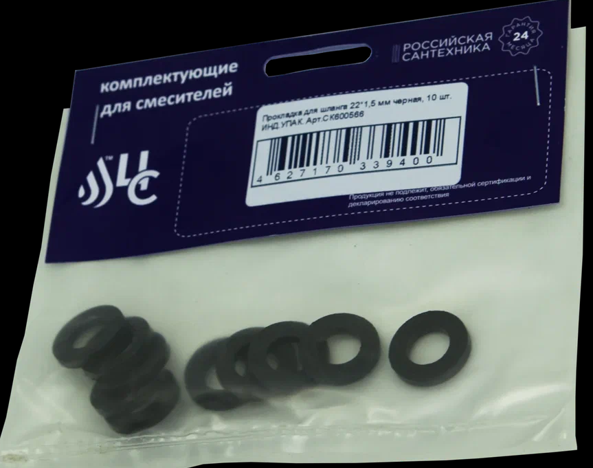 Прокладка для шланга 22*1,5 мм черная, 10 шт. ИНД.УПАК