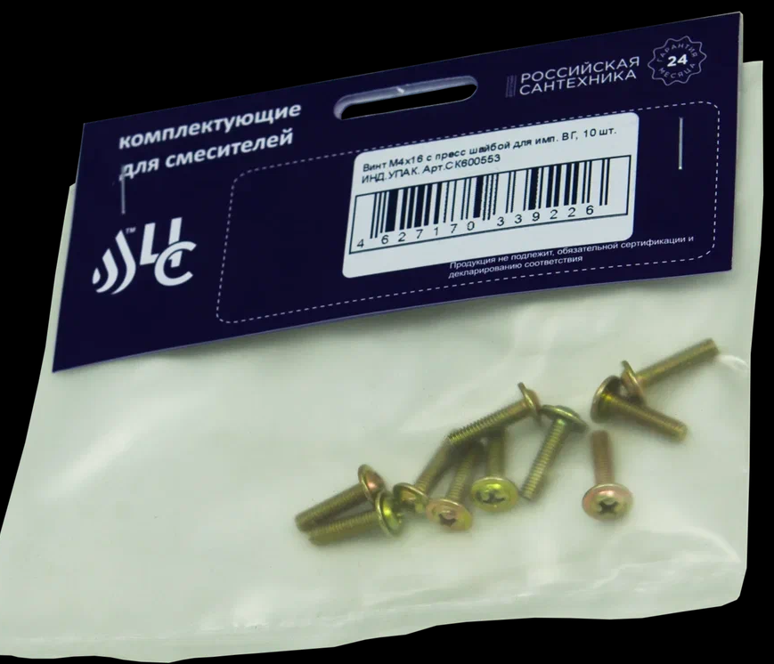 Винт М4*16 с пресс шайбой для имп. ВГ 10 шт. ИНД.УПАК