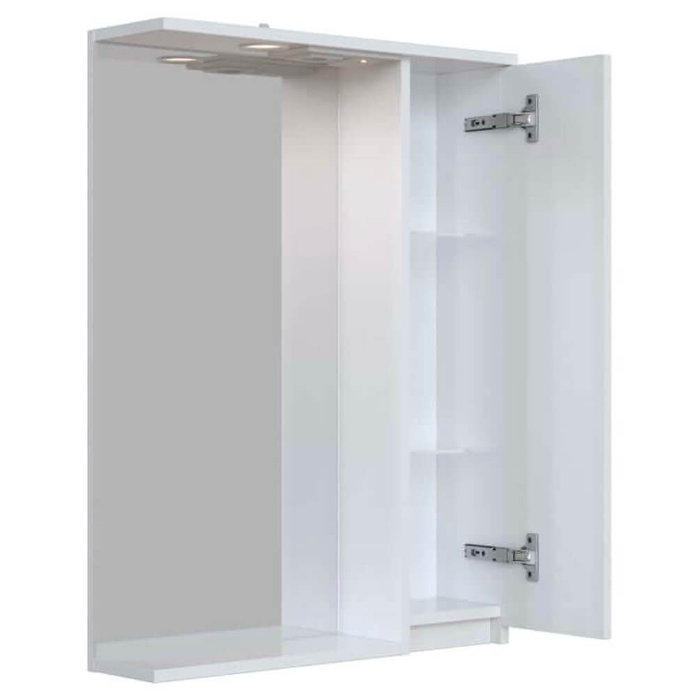 Зеркальный шкафчик с внутренними полками, подсветкой и розеткой. Корпус изготовлен из влагостойкой ДСП, фасад – из прочной МДФ.